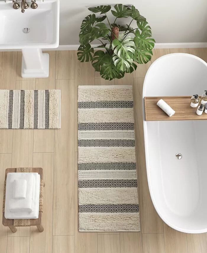 Коврик для ванной с текстурой ручной работы в стиле бохо, выполненный в глобальном стиле, мягкого цветового оттенка
