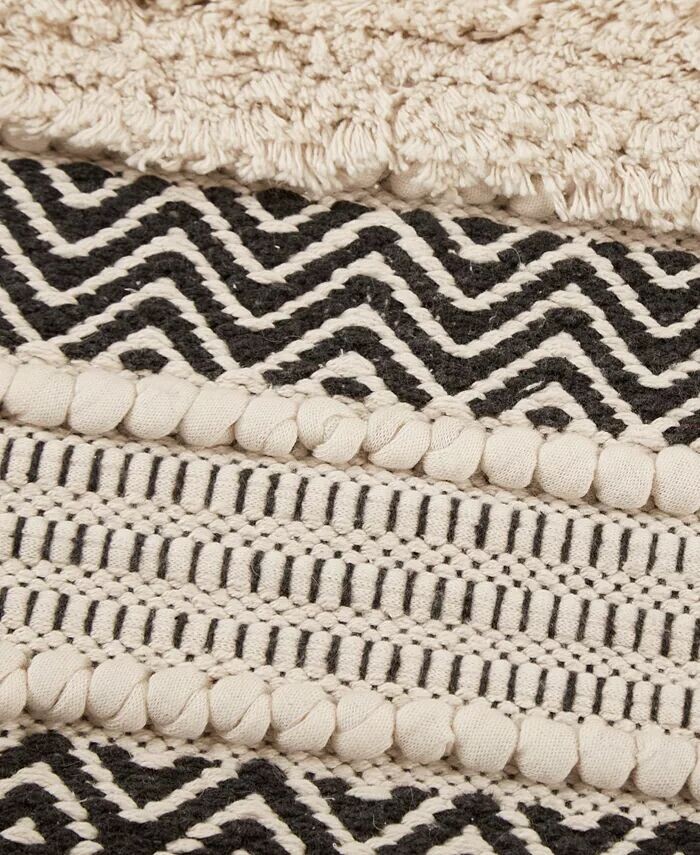 Коврик для ванной с тканой текстурой и полоской Asher INK+IVY, черный 6 691₽