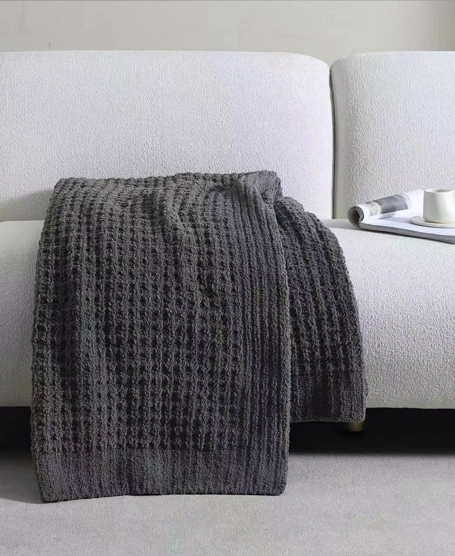 Вес изделия - 3 фунта', "Мягкий, удобный и легкий плед из одного слоя нашей фирменной плотной ткани с восхитительным вафельным узором, неотразимой текстурой, сочетающимися со всем цветами, уютный и дышащий, это беспроигрышный вариант", 'Машинная стирка в холодной воде, деликатный режим, не отбеливать, сушить в сушилке при низкой температуре