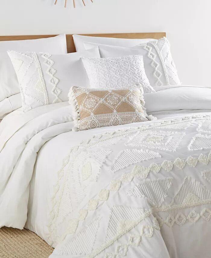 Комплект пододеяльников Harleson от Levtex Home — модный, объемный и современный. Этот дизайн сразу преобразит вашу спальню. Этот комплект пододеяльников, изготовленный из мягчайшего и легкого хлопка, украшен замысловатым жаккардовым узором из ворсованной синели и потертого хлопка. Он имеет тафтинговый и потертый этнический узор на белом фоне спереди и сплошной белый цвет из 100% хлопка на обороте. Закрывается на удобные и прочные кнопки.