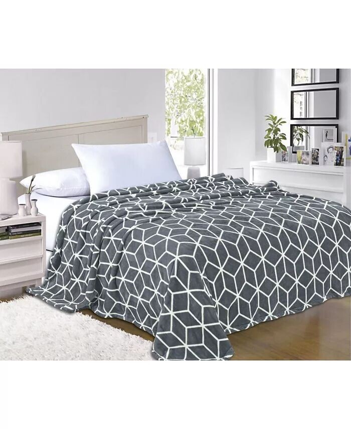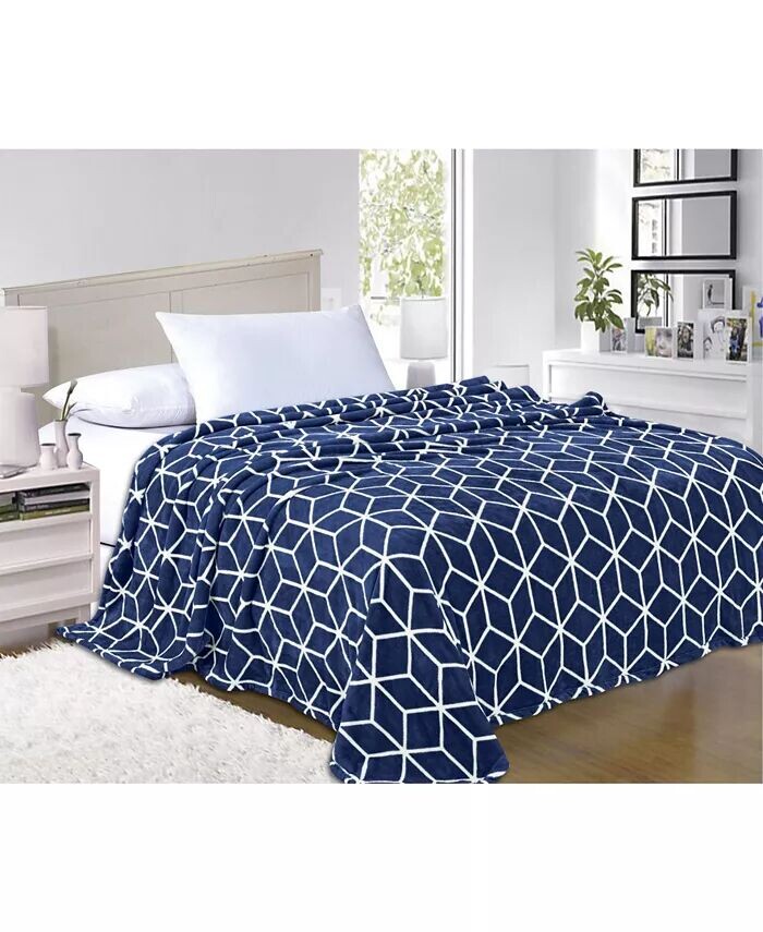Роскошное плюшевое флисовое одеяло Cube Elegant Comfort, синий