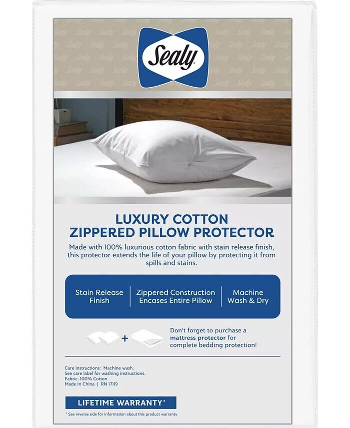 Защитная наволочка Sealy Luxury Cotton на молнии поможет сохранить вашу подушку такой же свежей, как в тот день, когда вы ее купили. Роскошный трикотаж имеет застежку-молнию и отделку для защиты от пятен. Мягкая, дышащая хлопчатобумажная ткань не испортит ощущение вашей подушки.