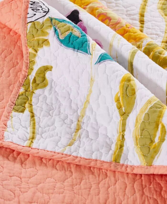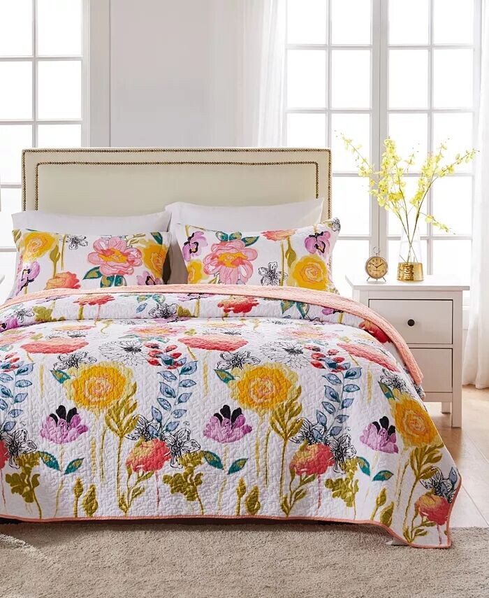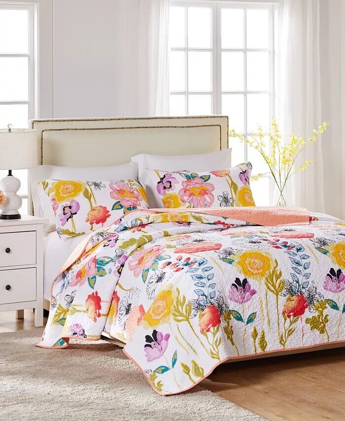 Оживите свою спальню с помощью искусно шикарного комплекта одеял мечты с акварелью. Цветные ростки распускаются рядом с трафаретными цветочными иллюстрациями на белом фоне. Меняется на однотонный цвет для создания двух образов в одном. Машинная стеганая ткань с краями, проклеенными тканью, для долговечности и привлекательности поверхности.
