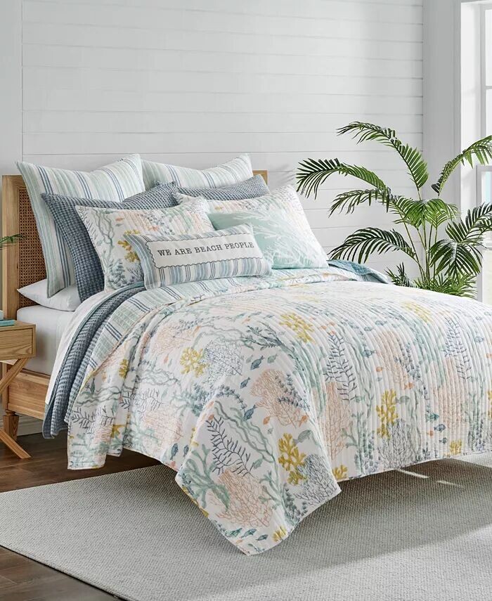 Набор: изысканное прибрежное одеяло и имитация этого набора одеял является частью коллекции Levtex Home Ocean Meadow. Это одеяло можно использовать само по себе, в качестве многослойного изделия или в качестве покрывала.