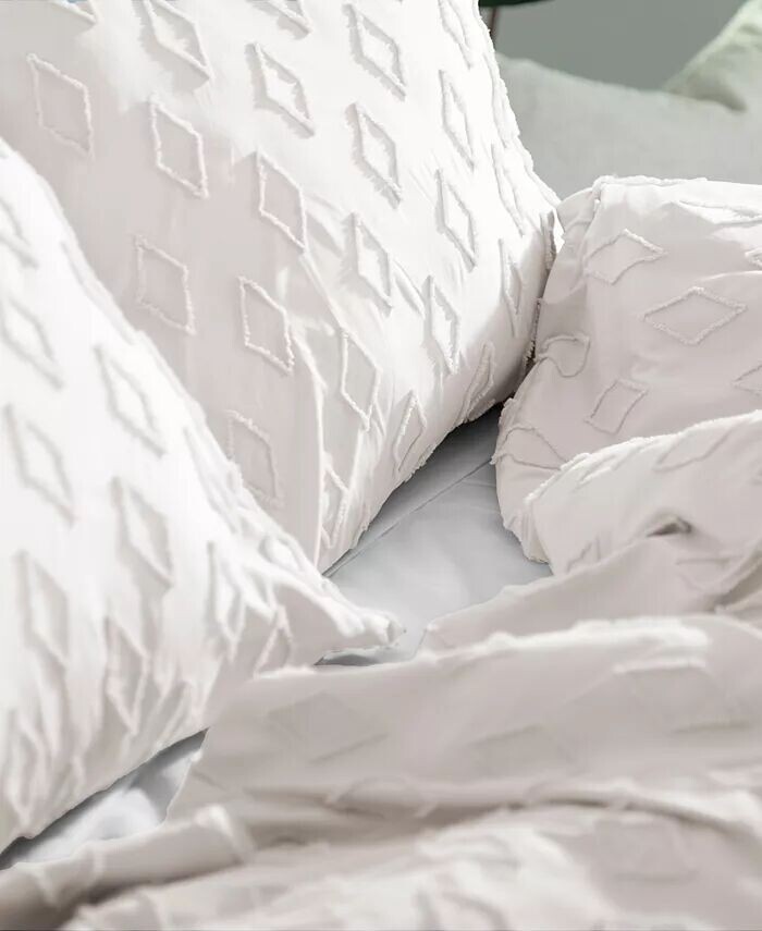 Придайте своей кровати уютный и шикарный вид с помощью текстурированного комплекта пододеяльников Gemma. Этот комплект пододеяльников с жаккардовым узором в виде ромбов придаст вашей кровати стиль и текстуру. Потайная застежка-молния и четыре внутренних угловых завязки с легкостью фиксируют вставку. Вставка не входит в комплект.