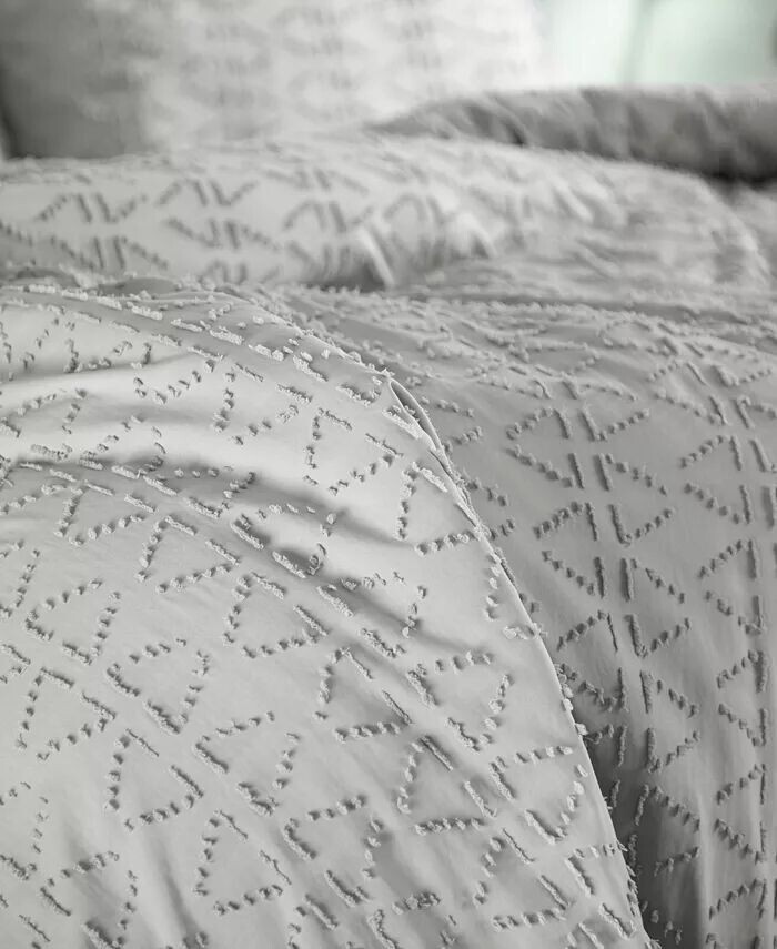 Освежите свою спальню с помощью текстурированного комплекта пододеяльников Dhara. Обрезанный жаккард имеет текстурированный треугольный дизайн в стиле шебби-шик. Потайная застежка-молния и внутренние угловые завязки надежно удерживают вставку на месте. Вставка не входит в комплект.