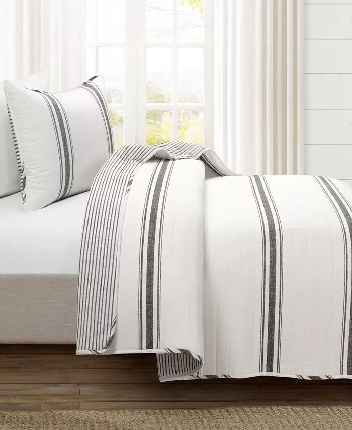 Двусторонние хлопковые одеяла в полоску в фермерском стиле Lush Décor, черный 41 340₽