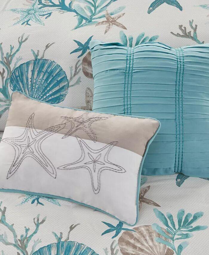 Вызовите морские воспоминания с комплектом пододеяльников Pebble Beach от Madison Park с принтом в виде морских звезд и кораллов в белых, насыщенных коралловых и бирюзовых тонах, а пододеяльник и накидка имеют гладкую поверхность из хлопкового сатина.
