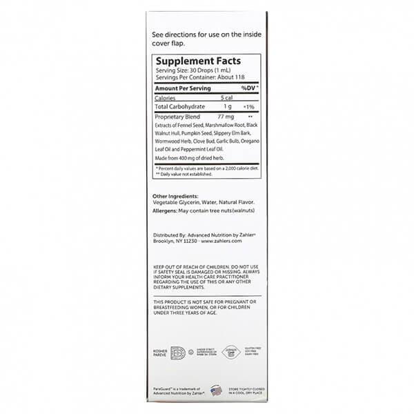 ParaGuard от Zahler содержит уникальную интенсивную смесь из 10 трав и эфирных масел, которые традиционно использовались для поддержания жизнеспособности пищеварения и восстановления микробного баланса.