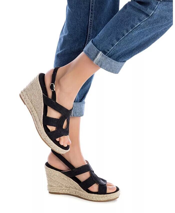 Женские джутовые босоножки на танкетке XTI, черный