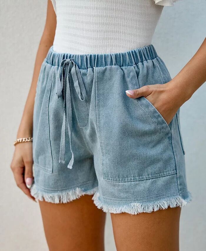 Приготовьтесь к лету с нашими джинсовыми шортами с потертостями и завязками! Эти шорты с игривым потертым краем и удобной талией на шнурке идеально подходят для повседневных дней и пляжной атмосферы.
