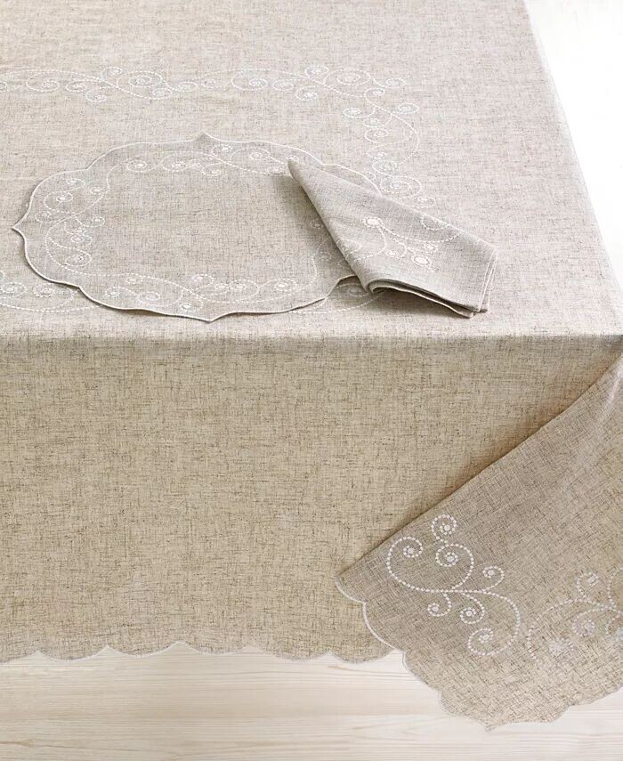 Очаровательная винтажная скатерть French Perle имеет зубчатый край, белую вышивку в центре и углах, а также естественный вид. Дополните столовой посудой French Perle, также производства Lenox.