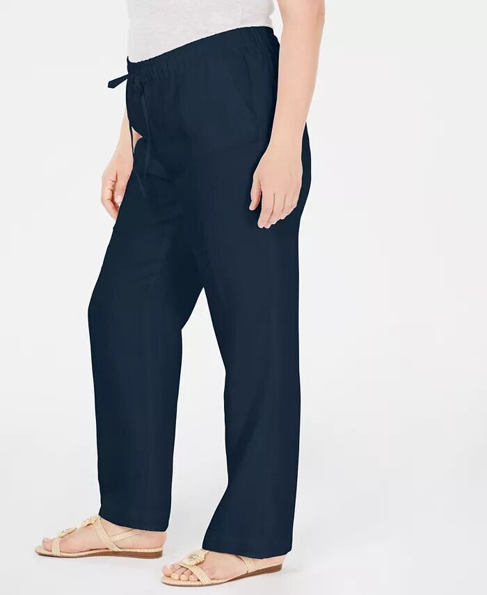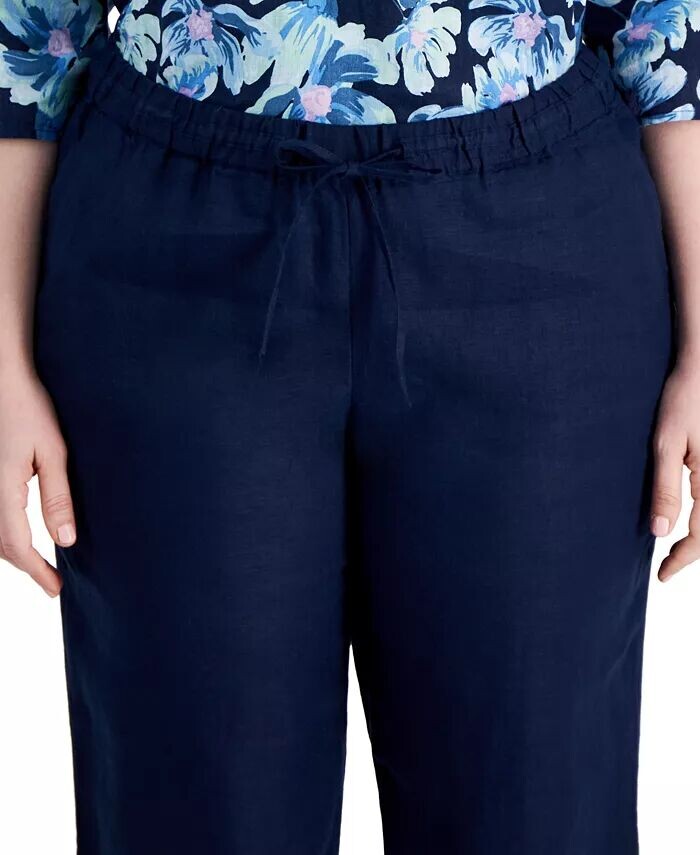 Брюки больших размеров Charter Club выполнены из легкого льна и имеют легкую завязку на талии для дополнительной защиты и комфорта.