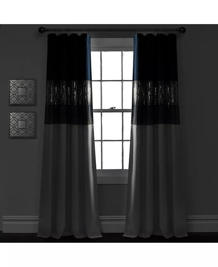 Эта уникальная конструкция имеет карманы для стержней сверху и снизу, позволяющие подвешивать панель с любого конца. Искусственный шелк в сочетании со сверкающими пайетками придают этому панно современный голливудский гламурный вид. Наслаждайтесь конфиденциальностью благодаря 100% затемняющей подкладке.