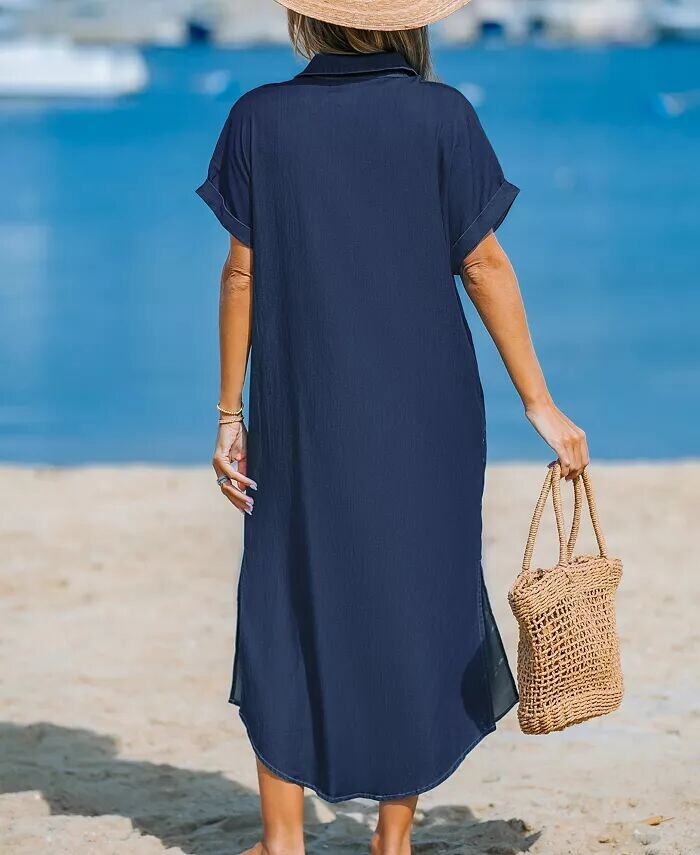 Женское джинсовое платье с короткими рукавами и пуговицами CUPSHE, синий