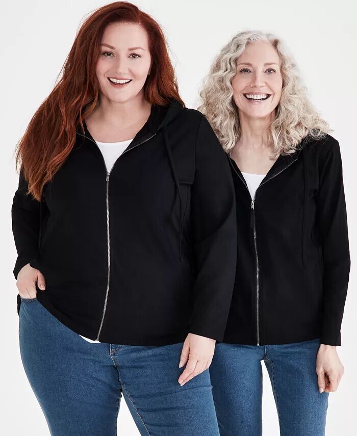 Женская толстовка с капюшоном на молнии спереди Style & Co, черный