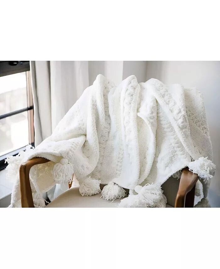 Плетеный плед с помпоном, 52 x 75 дюймов SUNDAY CITIZEN, бежевый 20 763₽