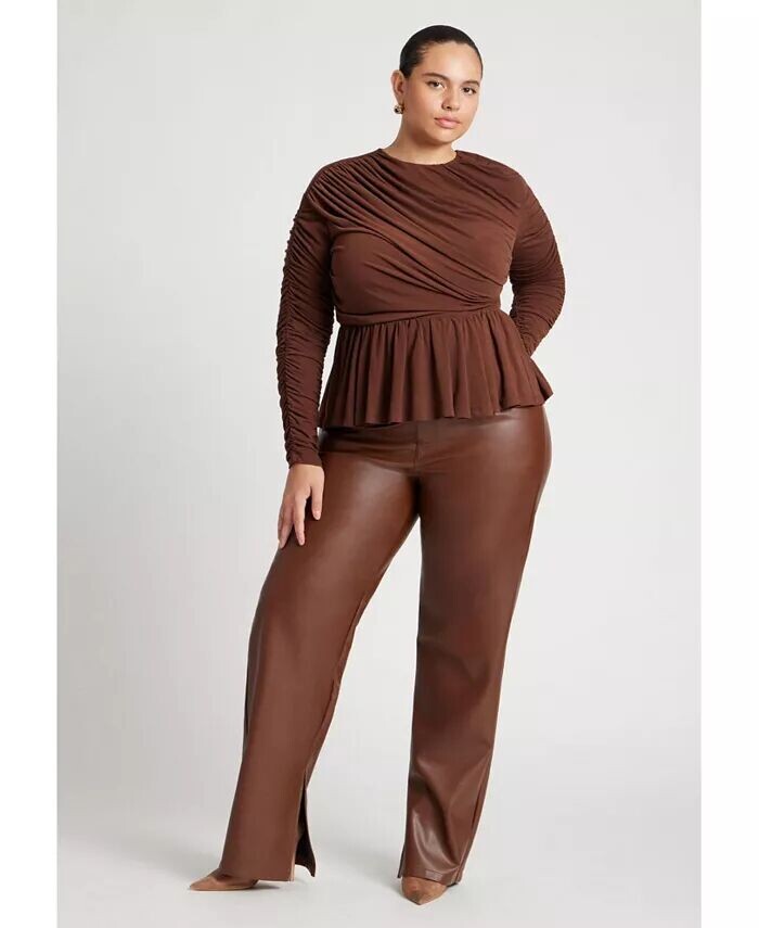 Топ больших размеров с баской и сборками ELOQUII, коричневый
