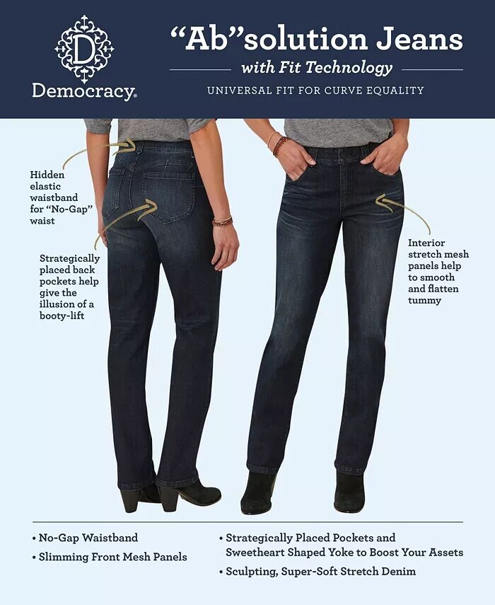 Эта узкая прямая модель с высокой посадкой, 27 внутренними швами, вышитыми задними карманами и технологией Ab