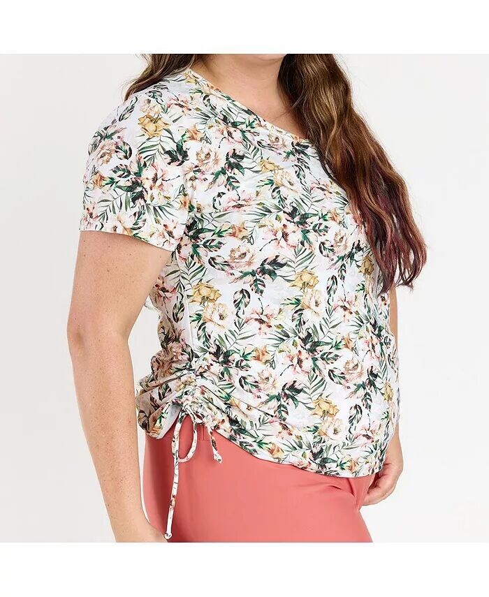 Погрузитесь в универсальность с нашим топом для плавания Adele с V-образным вырезом. Увеличьте размер для идеальной посадки. Шикарный V-образный вырез, короткие рукава, боковые рюши для занятий водными видами спорта. Созданный для быстрого высыхания и комфорта, с защитой UPF 50+, его можно носить поверх любимого бюстгальтера для плавания. Улучшите свою игру в плавание!