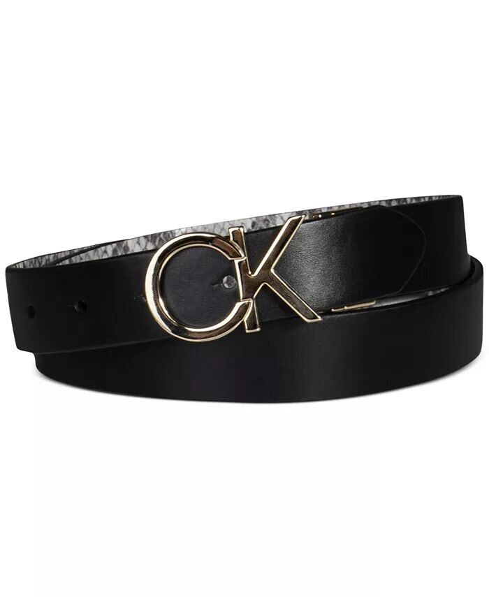 Женский двусторонний ремень с пряжкой с монограммой Calvin Klein, черный