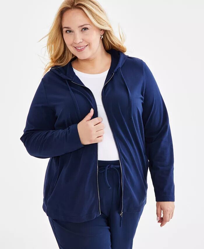 Толстовка больших размеров на молнии с капюшоном Style & Co, синий