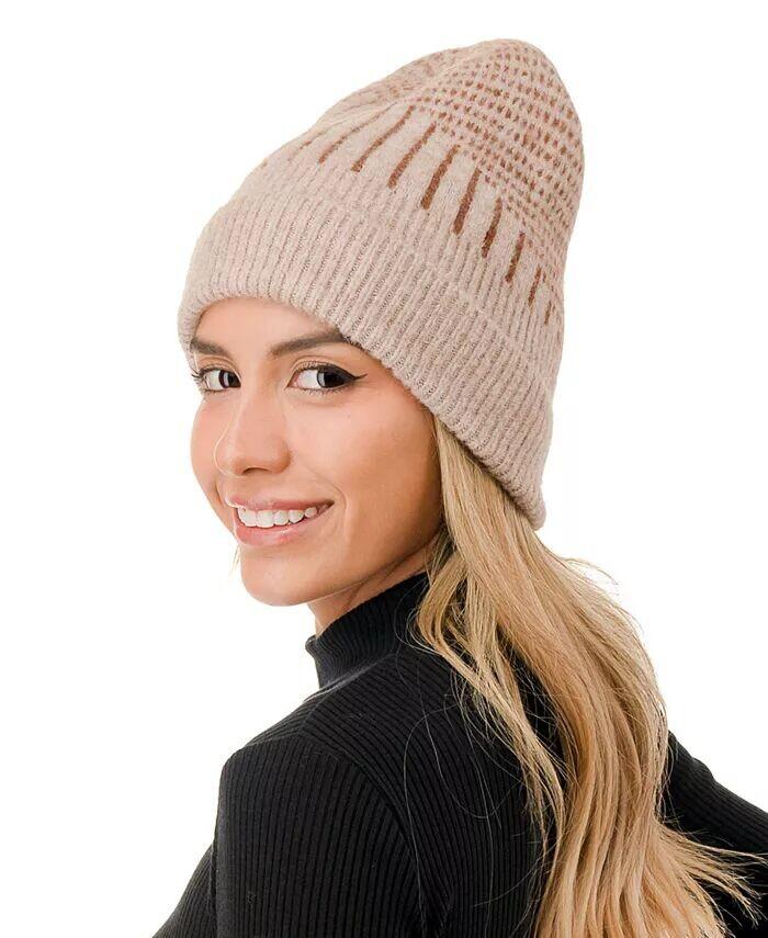 Сохраняйте стильность в нашей шапке-бини смешанной вязки с абстрактными деталями.
