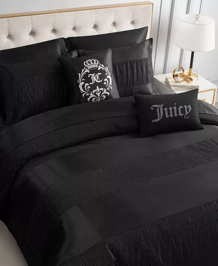 Побалуйте себя роскошным комфортом и гламурным стилем комплекта постельного белья Juicy Couture Glam Night. Этот комплект постельного белья, созданный известным лос-анджелесским брендом Juicy Couture, воплощает в себе повседневный гламур и дерзкий подход. Каждое изделие изготовлено из высококачественного 100% полиэстера и украшено черными полосками шелковистого атласа и атласа с зигзагообразной текстурой, что придает декору вашей спальни нотку изысканности.