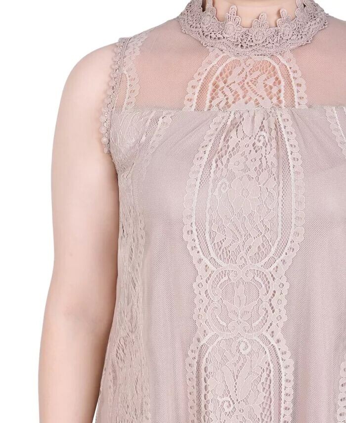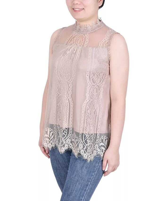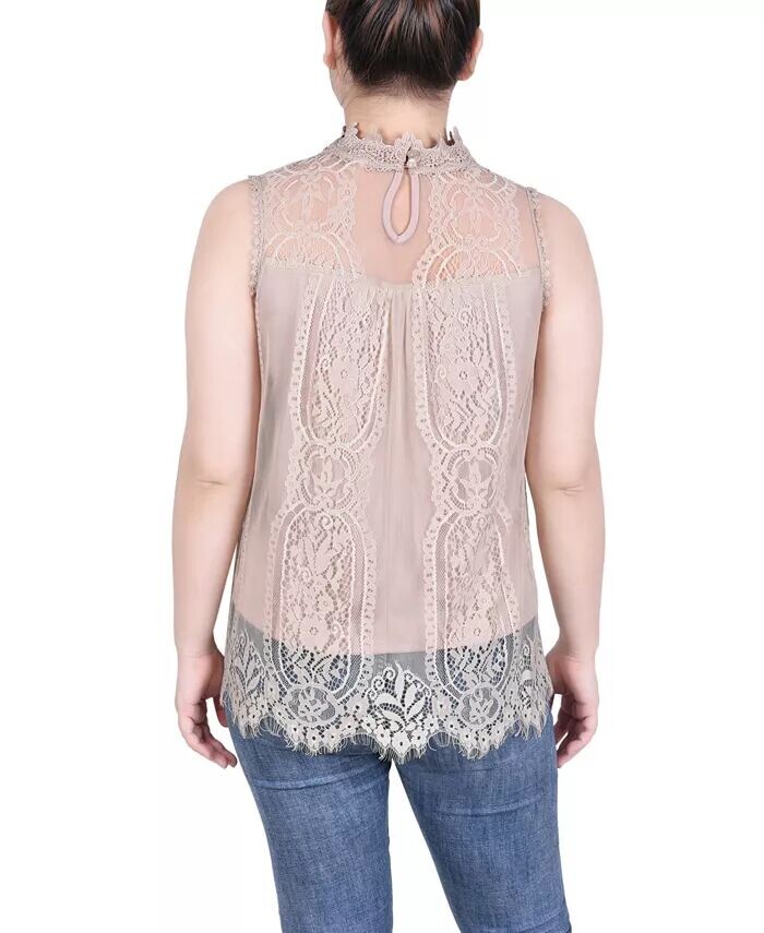 Кружевной топ с воротником-стойкой NY Collection, бежевый