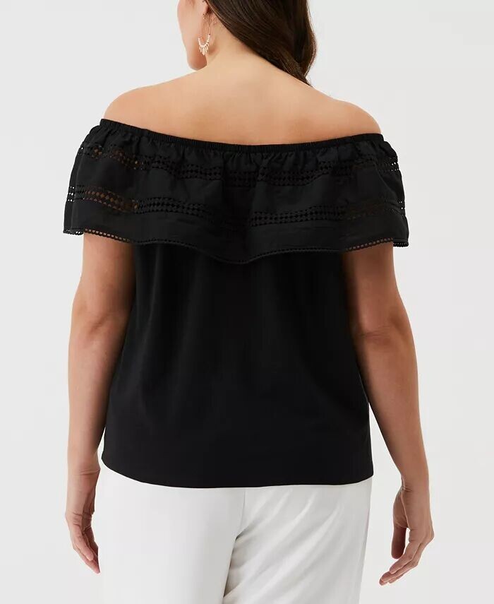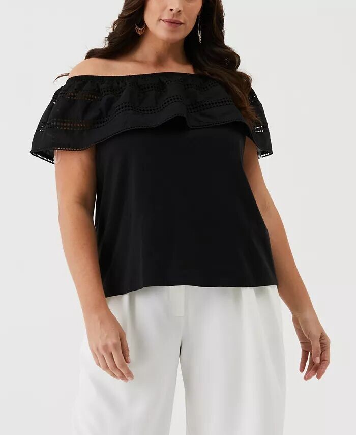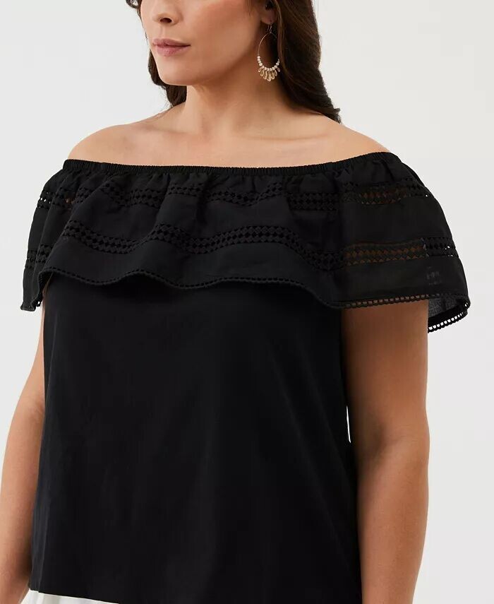 Топ больших размеров с открытыми плечами и вышивкой ELLA Rafaella, черный