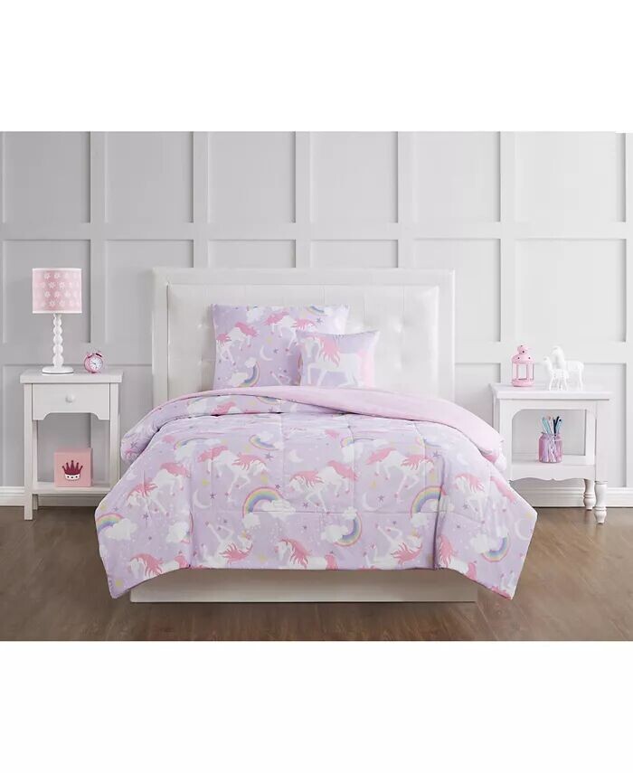 Этот рисунок постельного белья в виде единорога напечатан на мягкой лицевой ткани из микрофибры. Принт с единорогами, радугой и мерцающим ночным небом пожелает вам только сладких снов.