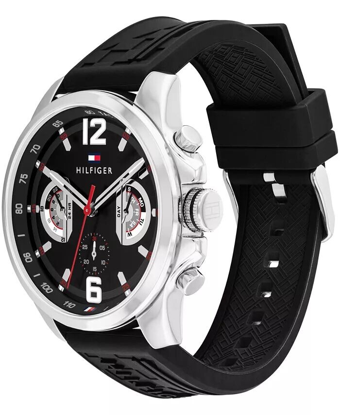 Мужские кварцевые черные силиконовые часы 46 мм Tommy Hilfiger, черный