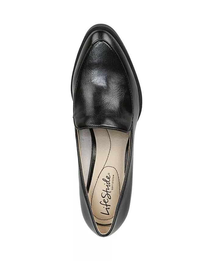 Полированные туфли идеальной высоты. Вам понравится носить этот индивидуальный образ. Верх из искусственной кожи или ткани с закругленным носком, без шнуровки и стилем в стиле лоферов. Комфортный пакет Soft System обеспечивает поддержку, гибкость и амортизацию в течение всего дня. Тяговая подошва обеспечивает дополнительную устойчивость. 2-дюймовый блочный каблук Just Right Height.