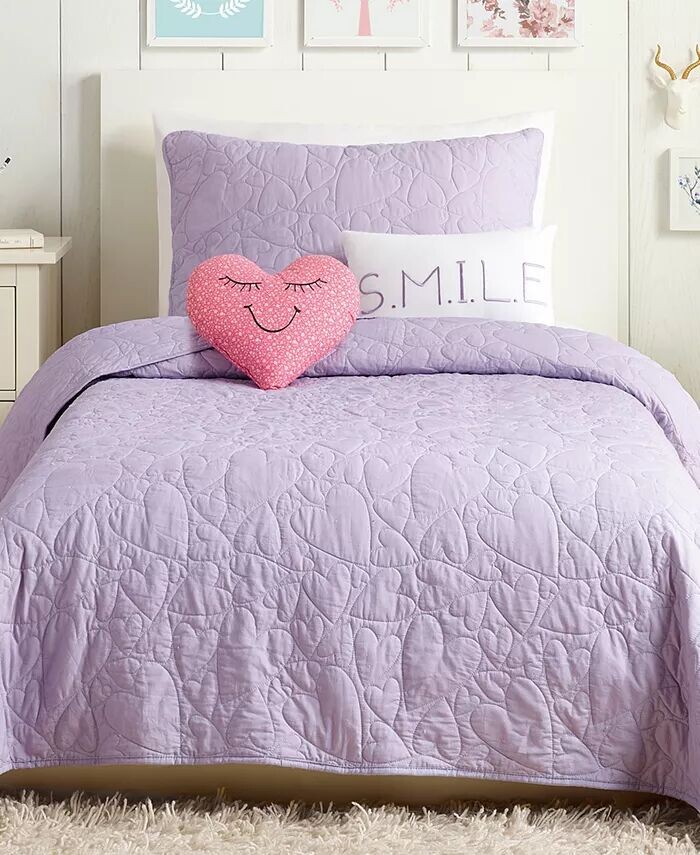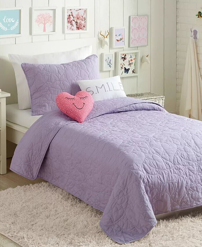 Придайте причудливый и любящий вид любой комнате с помощью веселого лавандового тона и стеганого сердечка этого удобного набора одеял от Urban Playground.