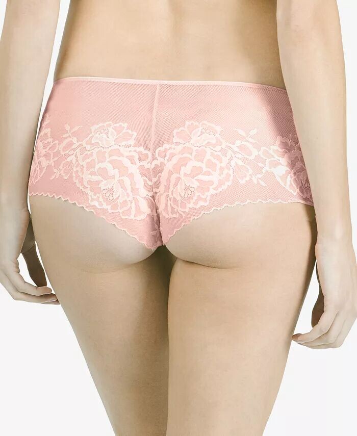 Прозрачный силуэт трусов Natori из эластичной сетки, вдохновленный шортами для мальчиков, украшен идеально расположенным кружевом.