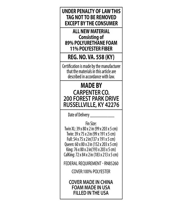 Serene является зарегистрированной торговой маркой Carpenter Co.; Comfort Tech, Supportive Air Technology и Iso