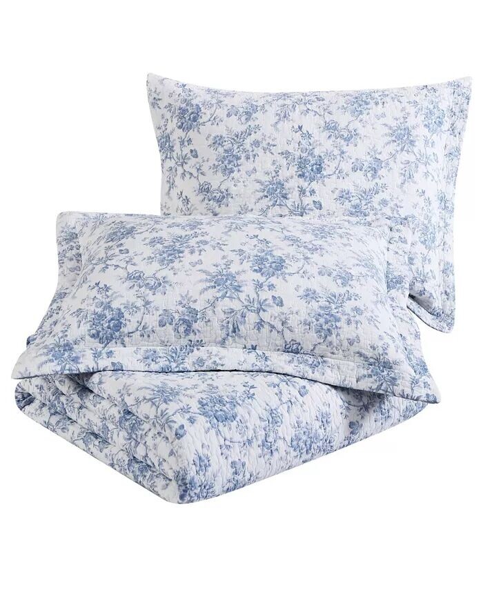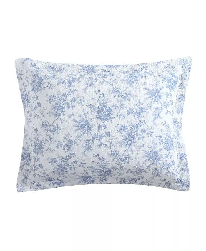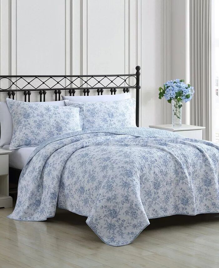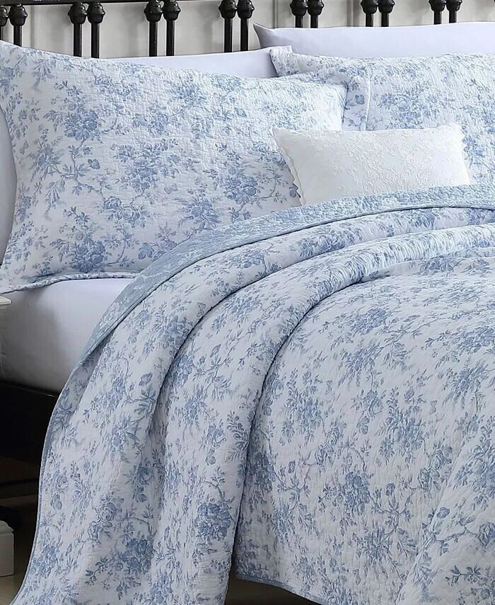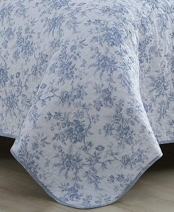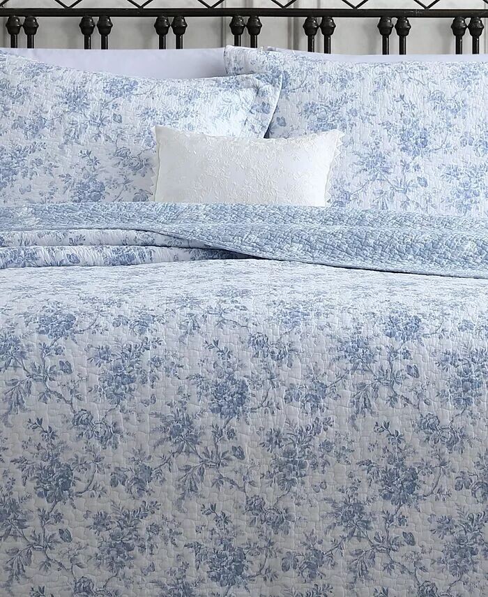 Комплект одеял Laura Ashley Walled Garden Quilt Set подчеркивает освежающие оттенки синего в цветочном узоре, который непрерывно напечатан на белоснежном лице. Одеяло превращается в более мелкий цветочный узор.