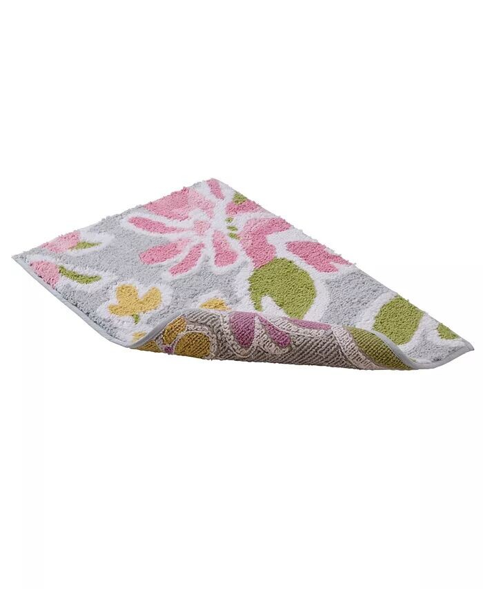 Коврик для ванной Izod Catalina украшен живописным цветочным узором в оттенках фиолетового, кораллового, розового, зеленого и желтого с белым контуром. Изготовлен из 100% хлопка, что обеспечивает мягкость на ощупь и превосходную впитываемость. 20 x 30, с нескользящей спинкой из латекса.