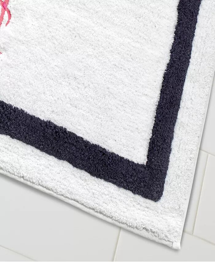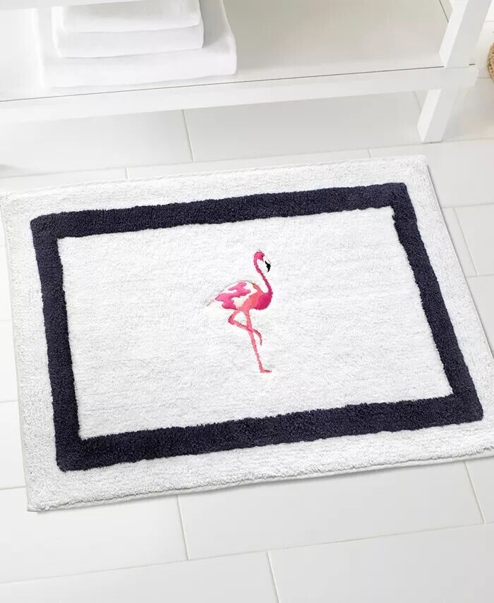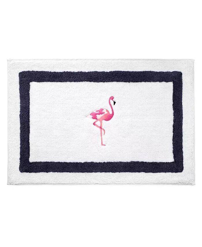 Коврик для ванной комнаты Izod Flamingo украшен вышитым розовым фламинго в центре белого ковра с ворсом, окаймленного темно-синей рамкой. Изготовлен из 100% хлопка, обеспечивающего мягкость и превосходную впитываемость. Размер ковра составляет 20 x 32 дюйма, а изнаночная сторона покрыта нескользящим латексом.
