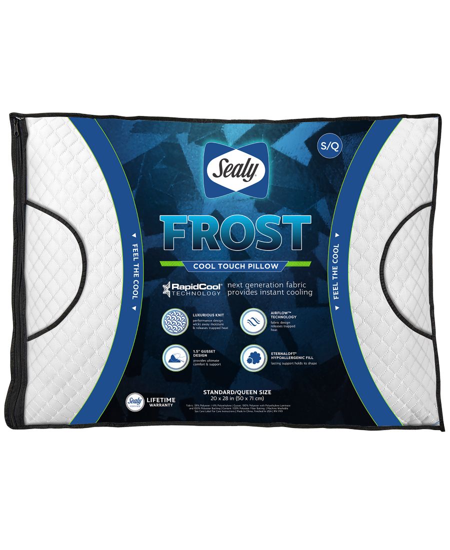 Подушка Sealy Frost Cool Touch обеспечивает комфорт и поддержку, не создавая ощущения перегрева. Она разработана с использованием динамической технологии быстрого охлаждения для мгновенного эффекта прохлады. Конструкция верхней части подушки с системой циркуляции воздуха отводит накопленное тепло, обеспечивая комфорт на протяжении всей ночи.