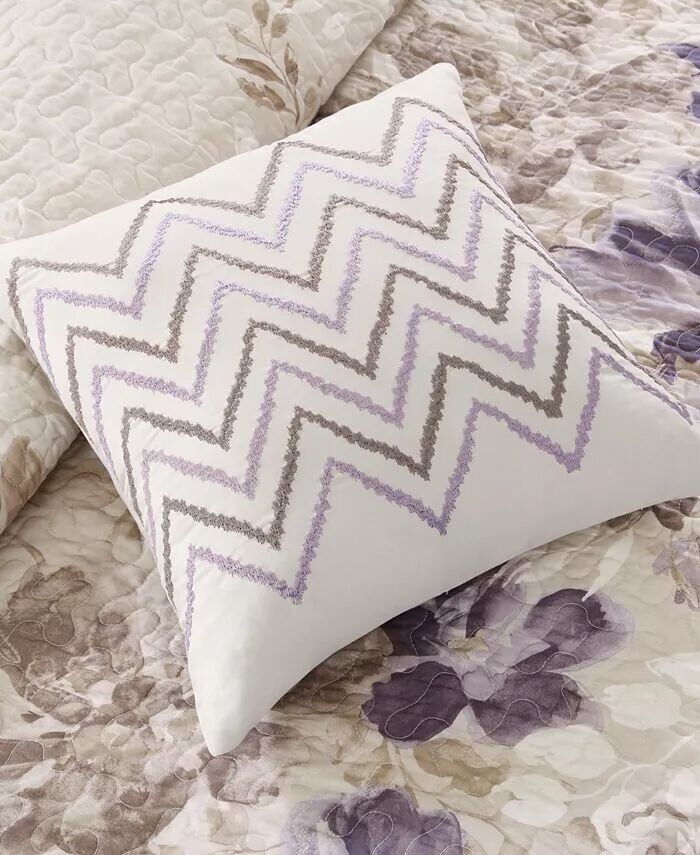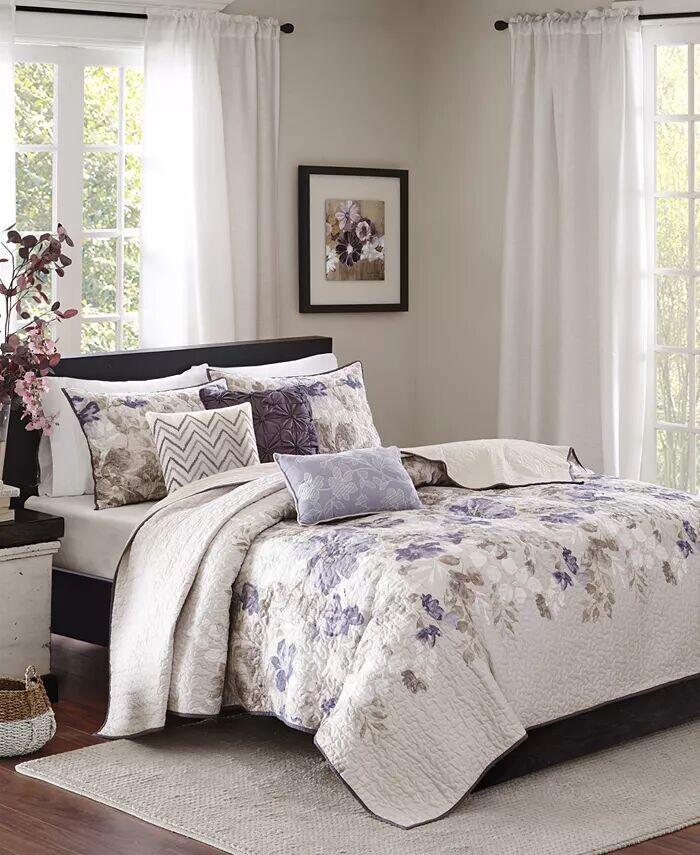 Добавьте очарования своей спальне с помощью комплекта одеял Luna от Madison Park со стеганой тканью и красивым цветочным узором на лицевой стороне двустороннего одеяла.
