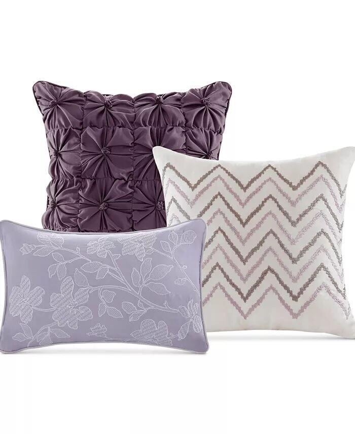 В комплект входят: одеяло (90 x 90 дюймов), три декоративные подушки (18 x 18 дюймов, 16 x 16 дюймов, 12 x 18 дюймов) и две стандартные подушки (20 x 26 дюймов)