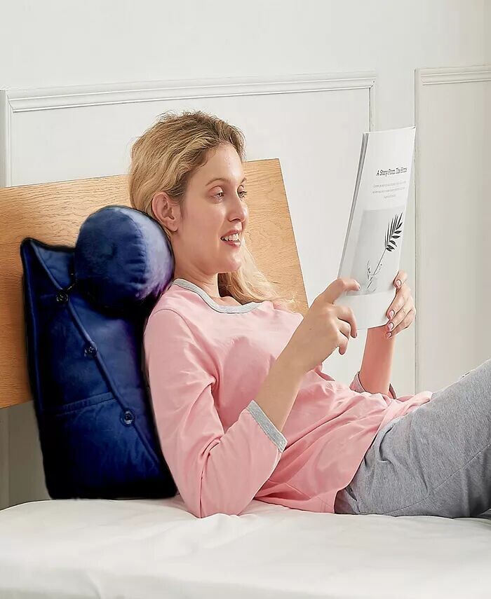 Эта подушка на спинку позволяет вам лежать или читать в любом положении: от вертикального до лежачего. Подушку для поддержки шейного отдела можно разместить на одной из трех высот: верхняя для поддержки шеи, средняя для поддержки спины или нижняя для поддержки поясничного отдела позвоночника.