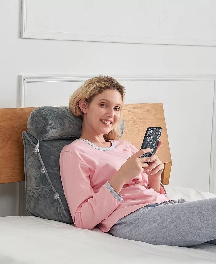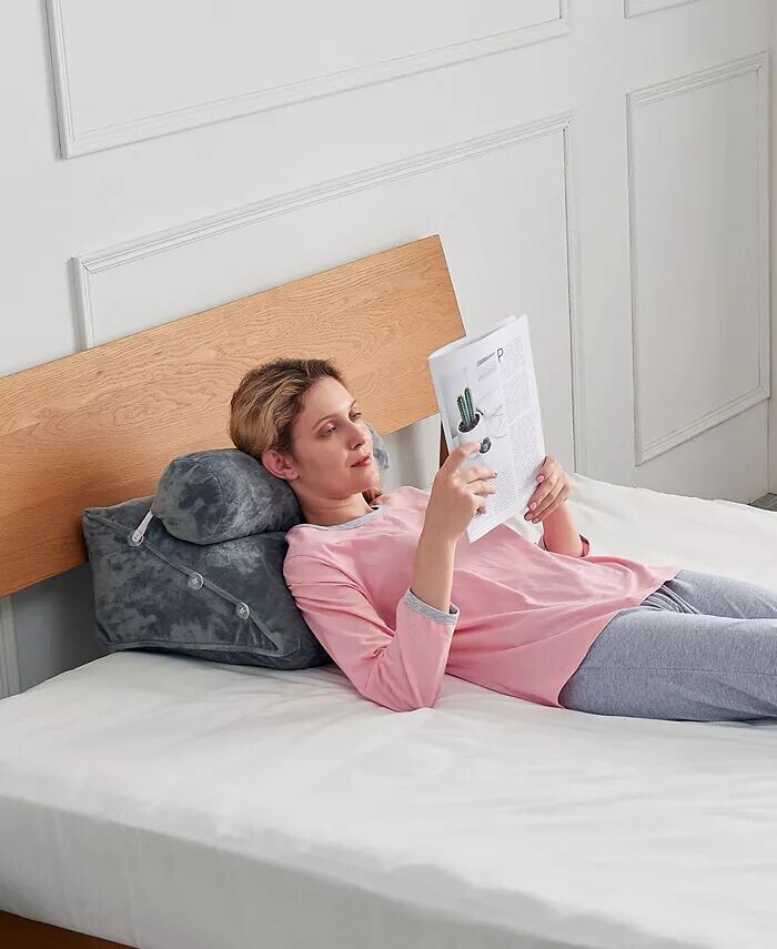 Эта подушка на спинку позволяет вам лежать или читать в любом положении: от вертикального до лежачего. Подушку для поддержки шейного отдела можно разместить на одной из трех высот: верхняя для поддержки шеи, средняя для поддержки спины или нижняя для поддержки поясничного отдела позвоночника.