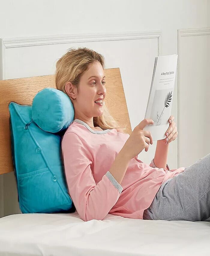 Эта подушка на спинку позволяет вам лежать или читать в любом положении: от вертикального до лежачего. Подушку для поддержки шейного отдела можно разместить на одной из трех высот: верхняя для поддержки шеи, средняя для поддержки спины или нижняя для поддержки поясничного отдела позвоночника.