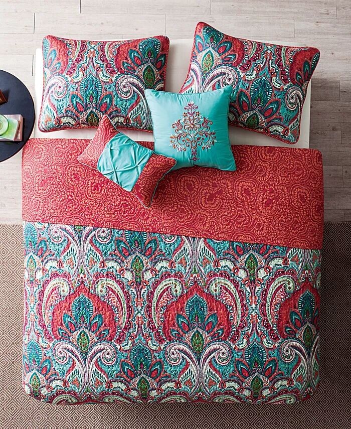 Добавьте ярких красок в свою комнату с помощью экзотического комплекта одеял Casa Re`al от VCNY Home, украшенного красиво украшенным дамасским узором.