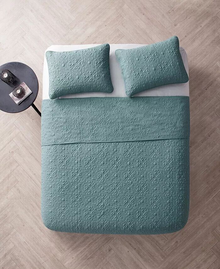 Классический уютный стиль приобретает свежий современный оттенок благодаря тисненым цветочным медальонам и современному тону этого комплекта одеял Caroline от VCNY Home.