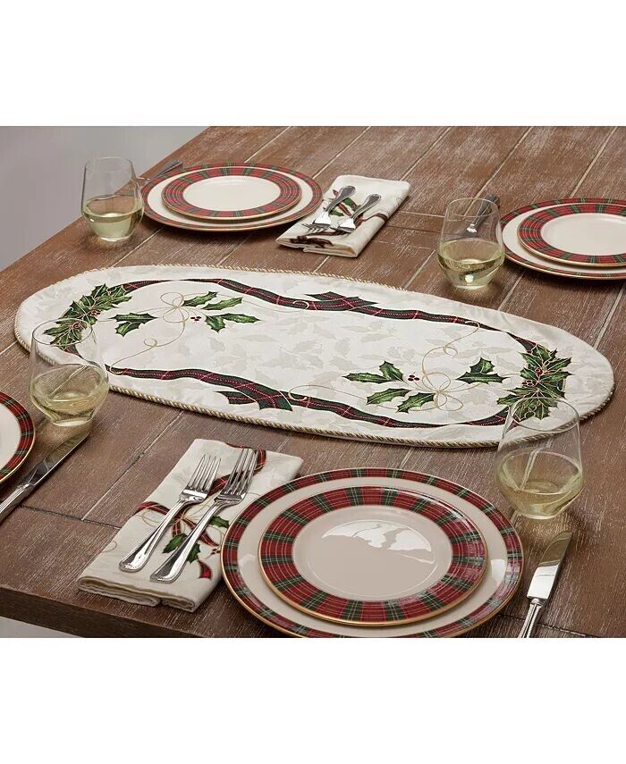 Классический мотив остролиста и ленты из прочной смеси хлопка сделает салфетки Lenox Holiday Nouveau постоянным спутником вашего рождественского стола.