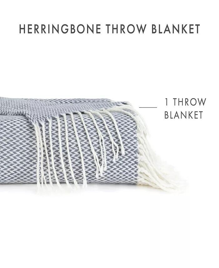 Плед с бахромой «елочка», 60 x 50 дюймов ienjoy Home, синий 10 641₽