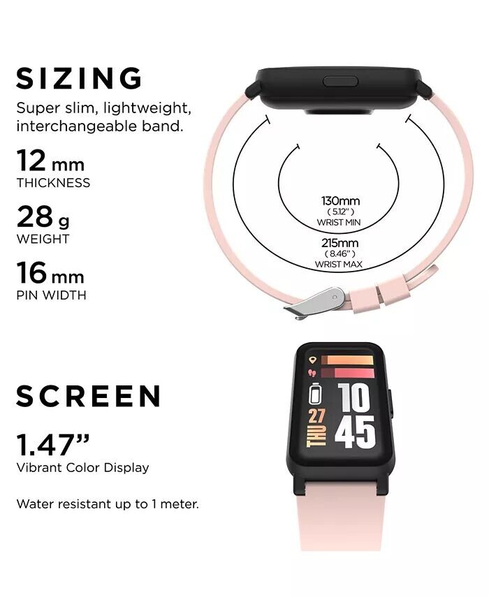 Прямоугольный черный корпус; 42,7 мм Механизм: Smart Watch Сенсорный дисплей Силиконовый ремешок с пряжкой, доступен в 5 цветах: черный, синий, розовый, коралловый и зеленый Аккумуляторная батарея с расчетным сроком службы до 10 дней Совместимость с i Phone и Android Водонепроницаемость IP68 Ограниченная гарантия на 1 год Эти умные часы предлагают уведомления о звонках и сообщениях, встроенные циферблаты, режимы тренировок, мониторинг сна, дыхательные упражнения, секундомер и будильники, таймер обратного отсчета, камера и музыкальный пульт, датчик движения, многоязычная поддержка, отслеживание калорий, расстояния, гидратации и целей активности. Он предоставляет обновления погоды, помогает в поиске ваши часы и включают в себя отслеживание цикла, потребления воды и кофе, историю тренировок, настраиваемые циферблаты, подключенный GPS, обновления прошивки и поддержку языка приложения. С датчиком сердечного ритма, сенсорным экраном, счетчиком шагов, постоянной частотой пульса и Мониторинг SP02, а также ручная настройка времени и даты — ваш лучший спутник в фитнесе. Силикон Очистка Фотография могла быть увеличена и/или улучшена. Подпишитесь на Macy's Worry Нет Программа защиты ювелирных изделий и часов More в течение 30 дней с момента покупки. Позвоните в службу поддержки клиентов по телефону: 1-800-BUY-MACY (1-800-289-6229), воспользуйтесь функцией чата Macy's или посетите любой магазин Macy's с датированной онлайн-квитанцией.